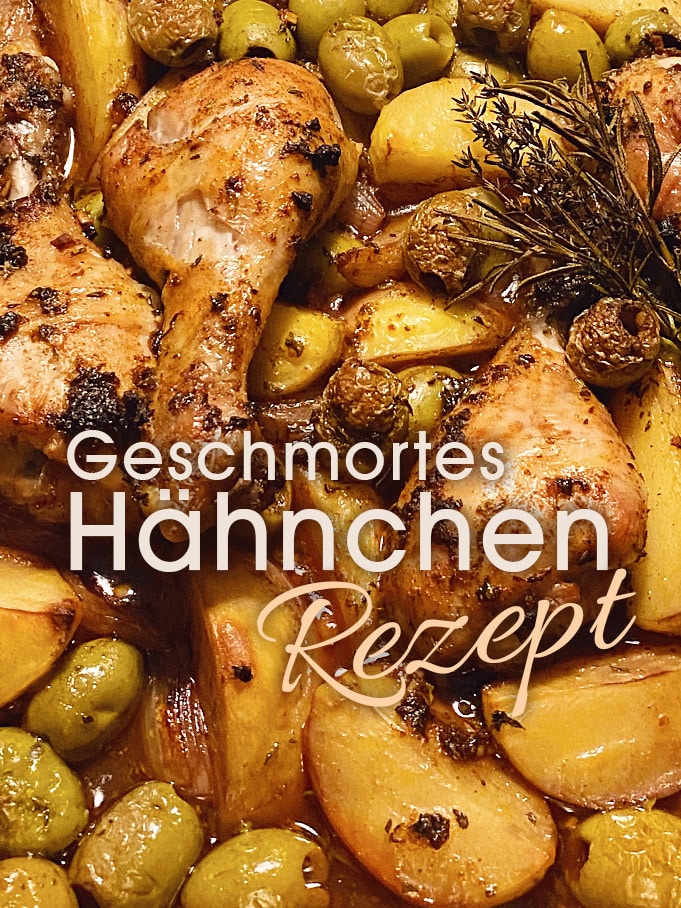 REZEPT: Geschmortes Hähnchen mit Schalotten, Oliven und Kartoffeln